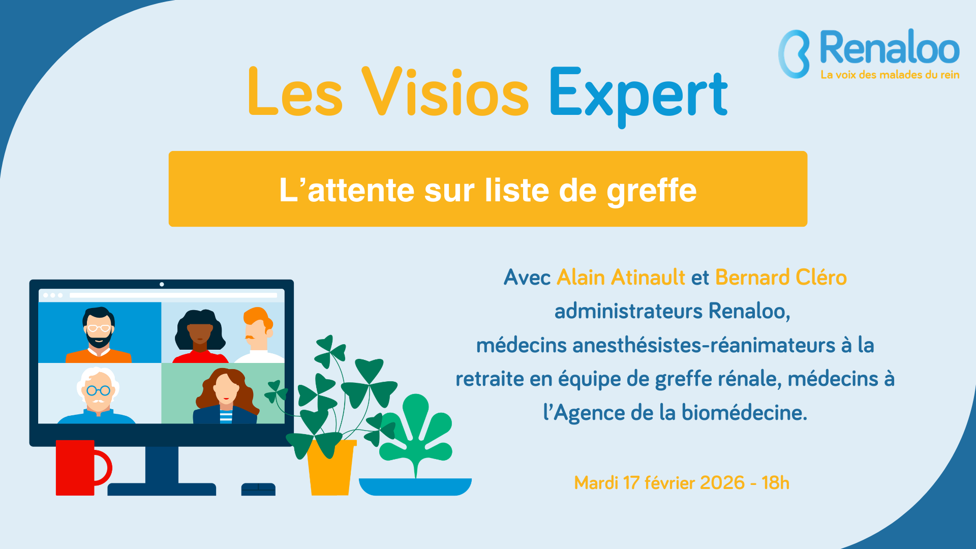 👥 Un binôme d’expert·es Renaloo accompagnera les échanges et apportera des éclairages en lien avec vos questions :