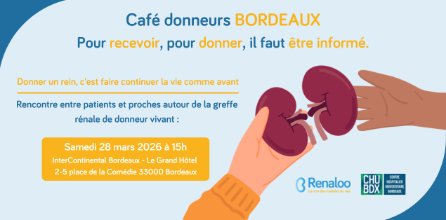 ➡️ Le Café Donneurs est une rencontre informelle entre personnes concernées par la maladie rénale (patients, proches, donneurs, receveurs…).